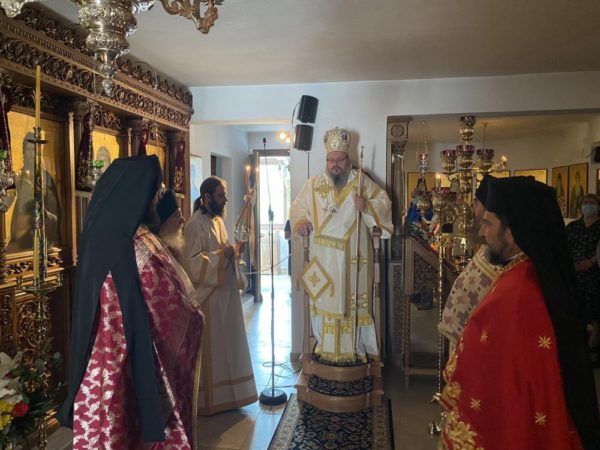 Στο Παρεκκλήσιο του Αγίου Παντελεήμονος, του Ιερού Ησυχαστηρίου της Παναγίας Γλυκοφιλούσης Ραψάνης , χοροστάτησε στον Όρθρο και τέλεσε τη Θεία Λειτουργία ο Σεβασμιώτατος Μητροπολίτης Λαρίσης και Τυρνάβου κ. Ιερώνυμος, την Τρίτη 27 Ιουλίου.