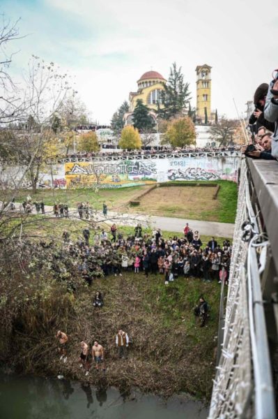 Αρκετοί ήταν εκείνοι που βούτηξαν στα παγωμένα νερά του ποταμού για να λάβουν την ευλογία του Σταυρού, τον οποίο έπιασε ο 22χρονος κ. Ιωάννης Τσουρτσούρης.