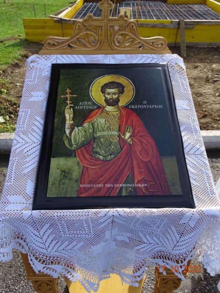 Ο κ. Ιερώνυμος τόνισε: «Με τον θεμέλιο λίθο που θέτουμε σήμερα ομολογούμε την Πίστη μας στον αληθινό Θεό και τους καρπούς του Αγίου Πνεύματος, τους Αγίους της Εκκλησίας μας. Ήταν πραγματικά πόθος ιερός να θεμελιώσουμε τον ναό επ’ ονόματι του Αγίου Λογγίνου και χάρη στην ευγενή προσφορά της κ. Κωνσταντίνας Μέγα και του κ. Χρήστου Γιαζίογλου πραγματοποιούμε την επιθυμία όλων των εργαζομένων».