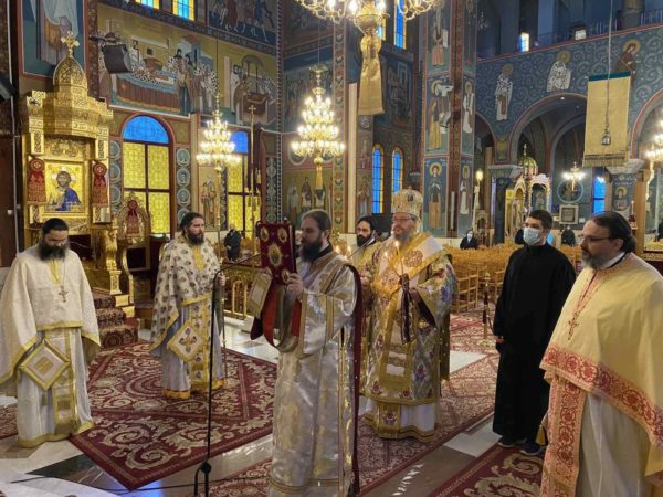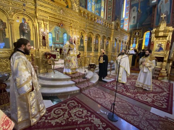 Στη Θεία Λειτουργία προεξήρχε ο Σεβασμιώτατος Μητροπολίτης Λαρίσης και Τυρνάβου κ. Ιερώνυμος, πλαισιούμενος από τους Ιερείς του Ναού.