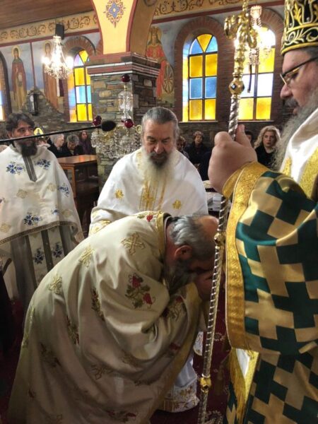 Προ της απολύσεως και αφού τέλεσε την ακολουθία της αρτοκλασίας και ανέγνωσε την ειδική ευχή για τα κόλλυβα του εορτάζοντος Αγίου, χειροθέτησε Πρωτοπρεσβύτερο τον δραστήριο εφημέριο της ενορίας π. Γεώργιο Μακρυγιάννη, ο οποίος έχει ανακαινίσει εκ βάθρων τόσο τον ενοριακό ναό όσο και το παρεκκλήσιο του χωριού, το οποίο είναι αφιερωμένο στην Παναγία Κριτσιλαριώτισσα.