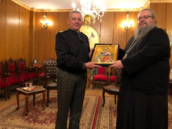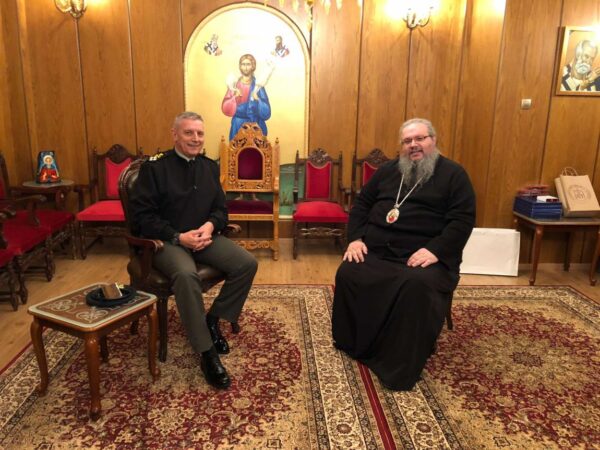 Ο Σεβασμιώτατος υποδέχθηκε εγκαρδίως τον κ. Αρχηγό, τηρώντας αμφότεροι τα ασφαλή μέτρα προφύλαξης που έχει συστήσει η Ελληνική Πολιτεία, τον συνεχάρη για τα νέα του υψηλά καθήκοντα και τον ευχαρίστησε για την άμεση συνεργασία και επικοινωνία όλο το χρονικό διάστημα που ο κ. Φλώρος είχε τα ηνία της Διοικήσεως της 1ης Στρατιάς.