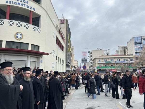 Στη συγκέντρωση διαμαρτυρίας που πραγματοποιήθηκε στην κεντρική πλατεία της Λάρισας την Παρασκευή 28 Φεβρουαρίου 2025 με την ευκαιρία της συμπληρώσεως δύο ετών από το τραγικό σιδηροδρομικό δυστύχημα των Τεμπών, συμμετείχαν οι Κληρικοί της Λάρισας με επικεφαλής τον Σεβασμιώτατο Μητροπολίτη Λαρίσης και Τυρνάβου κ. Ιερώνυμο.