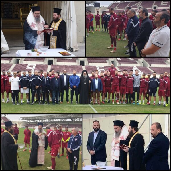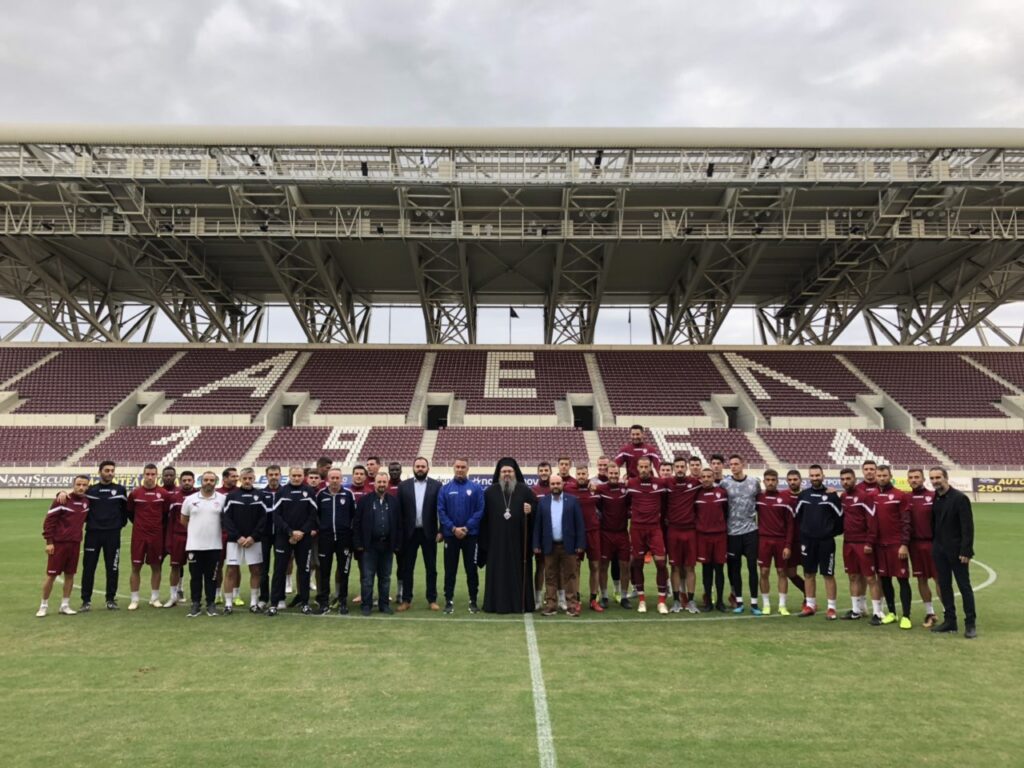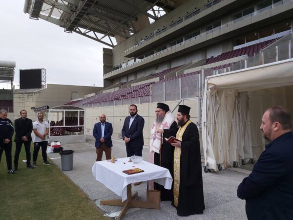 Τις εγκαταστάσεις που αγωνίζεται η ποδοσφαιρική ομάδα της ΑΕΛ επισκέφθηκε ο Σεβασμιώτατος Μητροπολίτης Λαρίσης και Τυρνάβου κ. Ιερώνυμος, προσκληθείς υπό του Προέδρου κ. Αλέξη Κούγια και της διοικήσεως. Ο σεπτός Ποιμενάρχης τέλεσε αγιασμό, ευλόγησε τους παίκτες, τους προπονητές, τη διοίκηση και όλο το προσωπικό του γηπέδου, ευχόμενος πολλές επιτυχίες στην αγαπημένη ομάδα όλων των Λαρισαίων.