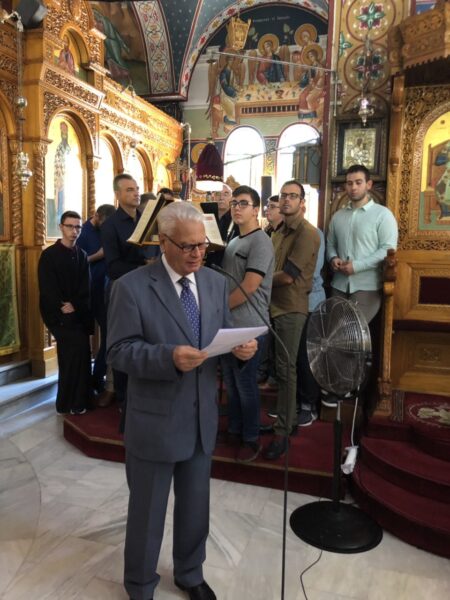 Ο πανηγυρικός της ημέρας εκφωνήθηκε εντός του ναού από τον κ. Σπυρίδωνα Μπαρμπούτη, καθηγητή Φυσικής.