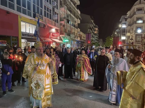 Στην συνέχεια στην κεντρική πλατεία, όπως κάθε χρόνο συγκεντρώθηκαν οι Επιτάφιοι των κεντρικών ενοριών της πόλεως, όπου και τελέστηκε ειδική δέηση ενώπιον μίας πραγματικής λαοθάλασσας πιστών Ορθοδόξων Χριστιανών, οι οποίοι “εν ενί στόματι” έψαλλαν τα εγκώμια του Επιταφίου Θρήνου και δοξολόγησαν τον Κύριο της Δόξης.