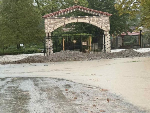 Το γηροκομείο αυτήν τη στιγμή είναι ασφαλές, καθώς εκτάκτως σηκώθηκε πρόχειρο ανάχωμα στην κεντρική του πόρτα, με αμμοχάλικο προκειμένου να εμποδίσει την είσοδο των υδάτων, τα οποία προέρχονται από σπασμένο ανάχωμα μερικές δεκάδες μέτρα από το προσκύνημα.