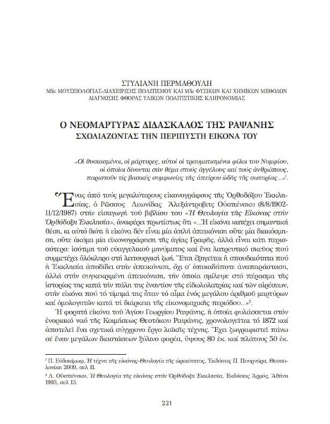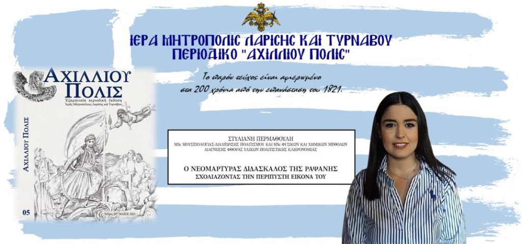 Διαβάστε το Άρθρο της κας Στυλιανής Περμαθούλη, MSc Μουσειολογίας-Διαχείρισης Πολιτισμού και MSc Φυσικών και Χημικών μεθόδων διάγνωσης φθοράς υλικών Πολιτιστικής Κληρονομίας, υπό το θέμα: “Ο Νεομάρτυρας Διδάσκαλος Της Ραψάνης – Σχολιάζοντας Την Περίπυστη Εικόνα Του”, όπως αυτό δημοσιεύτηκε στην Περιοδική Έκδοση “ΑΧΙΛΛΙΟΥ ΠΟΛΙΣ” της Ιεράς Μητροπόλεως Λαρίσης και Τυρνάβου,