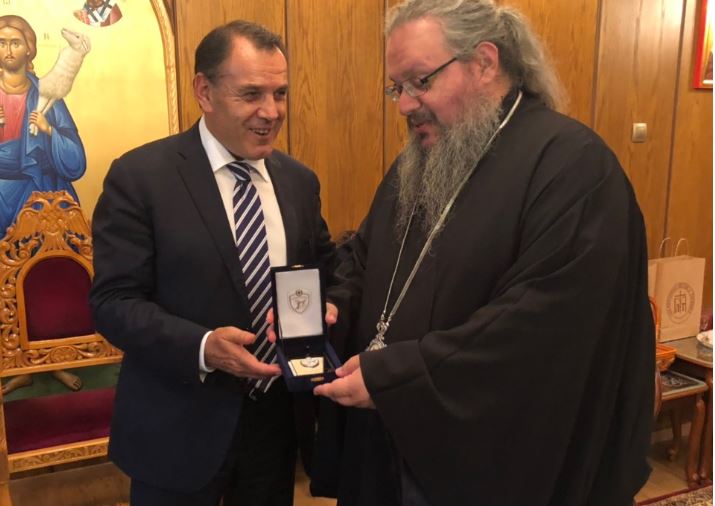 Την Τετάρτη 7 Αυγούστου ο Σεβασμιώτατος Μητροπολίτης Λαρίσης και Τυρνάβου κ. Ιερώνυμος υποδέχθηκε, τον Υπουργό Εθνικής Άμυνας κ. Νίκο Παναγιωτόπουλο, στην αίθουσα θρόνου της Ιεράς Μητροπόλεως, στο πλαίσιο επισκέψεων του Υπουργού σε στρατιωτικούς σχηματισμούς στη Θεσσαλία.