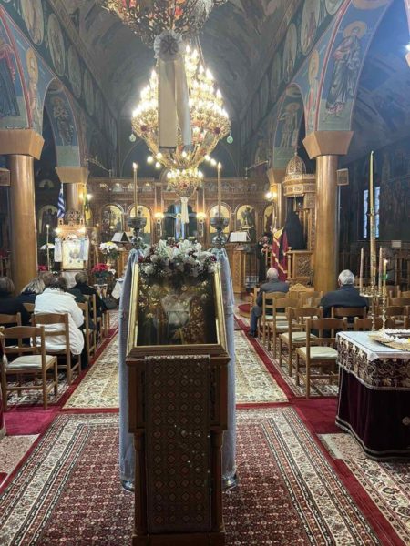 Ευχήθηκε δε πλούσια την ευλογία του Αγίου Θεού δια πρεσβειών του Ιεράρχου στους πιστούς.