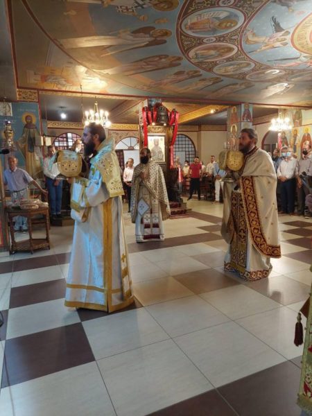 Στην Θεία Λειτουργία μετείχαν ο Πρωτοσύγκελλος της Μητροπόλεώς π. Ιγνάτιος, ο Ηγούμενος της Ιεράς Μονής Αγίων Θεοδώρων Ραψάνης π. Βαρθολομαίος και ιερείς της Μητροπόλεως.