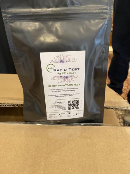 Στην προσφορά τριακοσίων (300) rapid rest, με ρινικό δείγμα, προχώρησε η Λαρισαϊκή εταιρεία “Prognosis Biotech” προς την Ιερά Μητρόπολη Λαρίσης και Τυρνάβου, τα οποία θα χρησιμοποιηθούν για τις ανάγκες των εθελοντών που διακονούν στους Ιερούς Ναούς αυτές τις ημέρες.