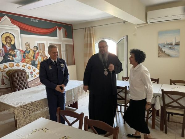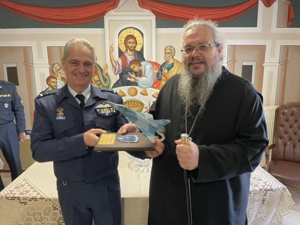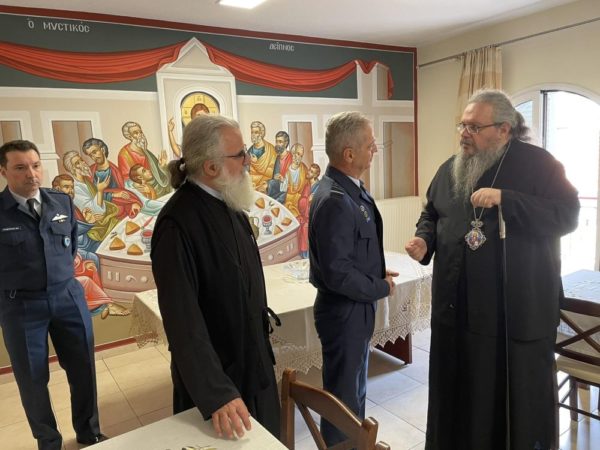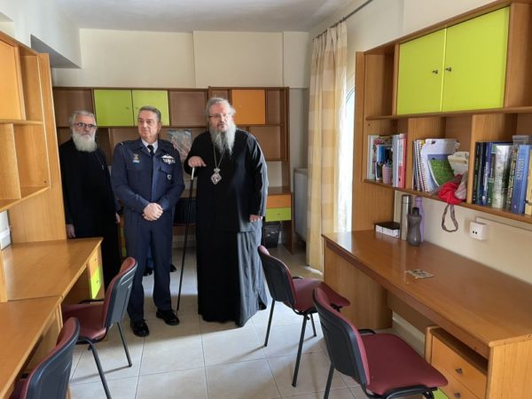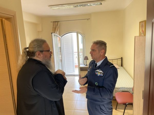 Ο Σεβασμιώτατος Μητροπολίτης Λαρίσης και Τυρνάβου κ. Ιερώνυμος υποδέχθηκε τον Αρχηγό Τακτικής Αεροπορίας Αντιπτέραρχο (Ι) κ. Γεώργιο Φασούλα και τον ευχαρίστησε για τη σημαντική προσφορά ατομικών ειδών υγιεινής και καθαριότητας προς το νέο ίδρυμα της Μητροπόλεως και ευχήθηκε τα δέοντα τόσο στον ίδιο, όσο και σε όλα τα στελέχη της Τακτικής Αεροπορίας, η οποία ως αεί πόλεμο όπλο είναι σε διαρκή ετοιμότητα και διασφαλίζει την κυριαρχία στο Αιγαίο.