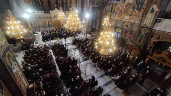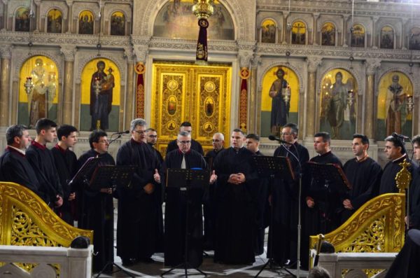Την μουσική βραδιά ολοκλήρωσε ο «Χορός Ψαλτών Ι. Ν. Αγίου Γεωργίου Νικαίας Λάρισας», υπό τη Διεύθυνση του κ. Θεοδώρου Ξιώνη. Η χορωδία της Νίκαιας παρουσίασε Αναστάσιμους Ύμνους Κυριακών του Πεντηκοσταρίου.