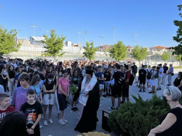 Πρώτο κουδούνι σήμερα χτύπησε για την έναρξη της νέας σχολικής χρονιάς και ο Σεβασμιώτατος Μητροπολίτης Λαρίσης και Τυρνάβου κ. Ιερώνυμος τέλεσε τον καθιερωμένο αγιασμό σε σχολεία της Λάρισας και της Νίκαιας, ενώ προ του δι’ ευχών μίλησε καταλλήλως σε όλους τους μαθητές, τους δασκάλους και τους καθηγητές και ακολούθως, ευλόγησε τα παιδιά που υπομονετικά περίμεναν για να αγιαστούν και να λάβουν την ευλογία της Εκκλησίας μας.