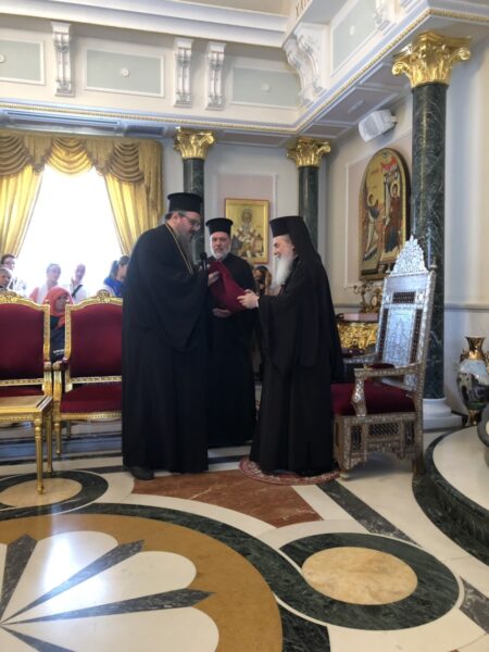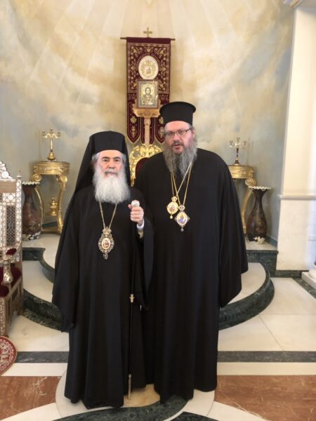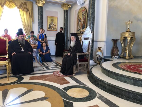 Η πρώτη μέρα ξεκίνησε με την επίσκεψη στο Πατριαρχείο Ιεροσολύμων, εκεί όπου ο Μακαριώτατος Πατριάρχης κ. κ. Θεόφιλος επεφύλαξε θερμή υποδοχή στον Σεβασμιώτατο και σε όλους τους συνοδοιπόρους του.