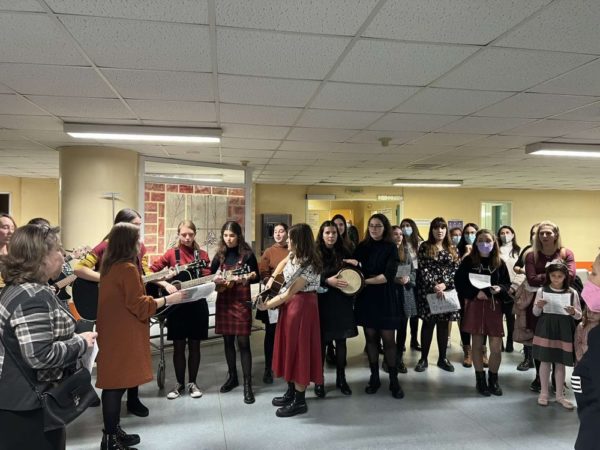 Τα κορίτσια έψαλλαν Χριστουγεννιάτικους ύμνους, τραγούδια και κάλαντα με τη συνοδεία μουσικών οργάνων, ενώ μοίρασαν ευλογίες σε όλο το διοικητικό και νοσηλευτικό προσωπικό. Οι ασθενείς και οι συγγενείς τους, δέχθηκαν αυτήν την απρόσμενη επίσκεψη με μεγάλη χαρά, ενώ η συγκίνηση ήταν ζωγραφισμένη στα πρόσωπά τους.