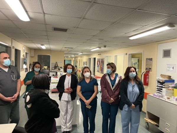 Στην είσοδο του νοσοκομείου τους υποδέχθηκε ο Διοικητής του Νοσοκομείου κ. Δημήτρης Κατσικονούρης.