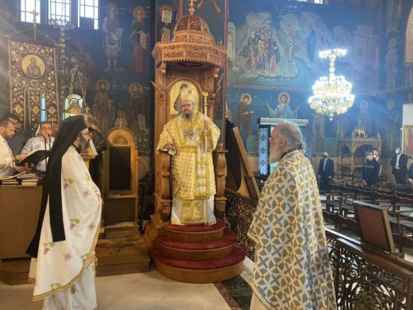 Τον Σεβασμιώτατο πλαισίωναν ο Προϊστάμενος του Ναού και Γραμματέας των Συνοδικών Δικαστηρίων της Εκκλησίας της Ελλάδος, Πανοσ. Αρχιμανδρίτης π. Σεβαστιανός Σωμαράκης και οι Εφημέριοι Πρωτοπρεσβύτερος π. Παναγιώτης και π. Γεώργιος.