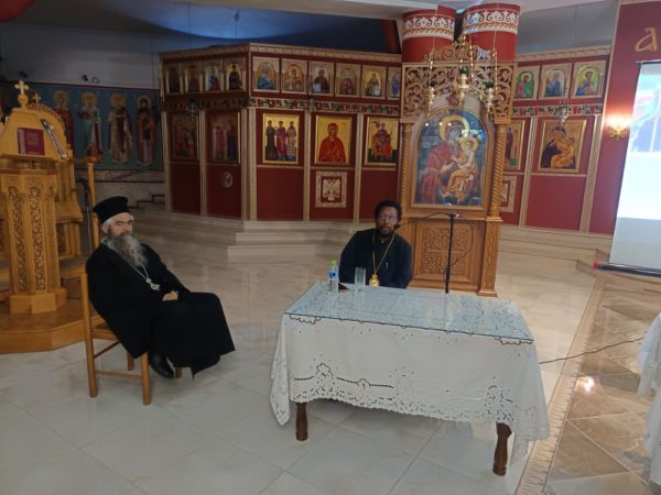 Μετά το πέρας της Θείας Λειτουργίας ακολούθησε η παρουσίαση του έργου της Ορθοδόξου Εκκλησίας στην ανατολική Ουγκάντα που συνοδεύτηκε με πλούσιο οπτικοακουστικό υλικό. Ιδιαίτερη μνεία έγινε για το σχολείο που δημιουργήθηκε στην επαρχία του, στην μνήμη των κεκοιμημένων ενοριτών του Ιερού Ναού Προφήτη Ηλία Λαρίσης, Βασιλείου, Ευδοξίας και Χαραλάμπου Στεργιούλη.
