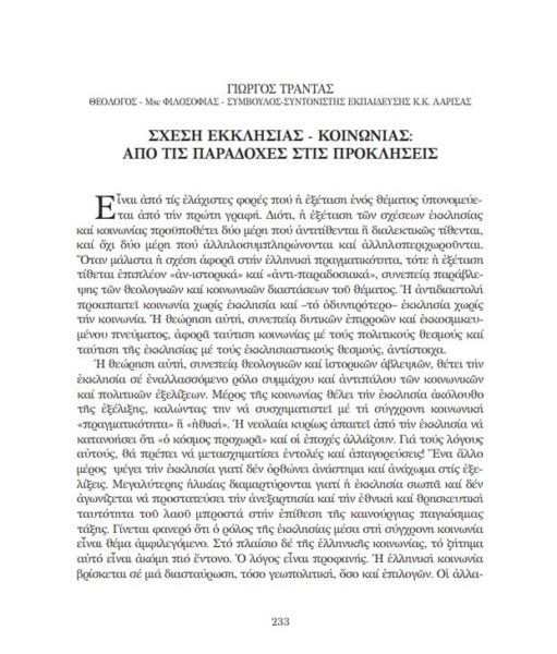 “Σχέση Εκκλησίας – Κοινωνίας: Από Τις Παραδοχές Στις Προκλήσεις”