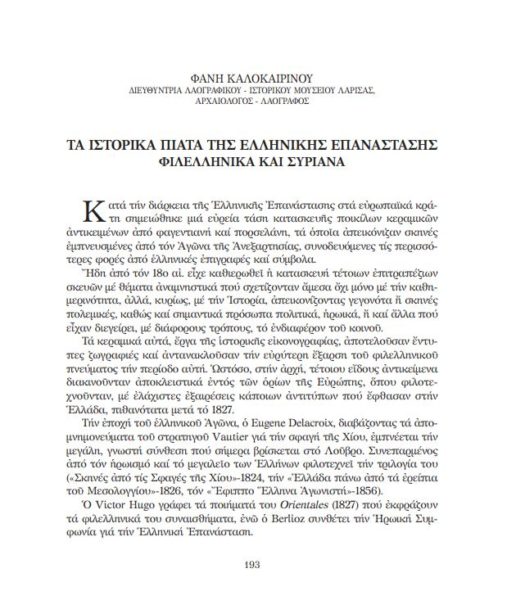 “Τα Ιστορικά Πιάτα Της Ελληνικής Επανάστασης, Φιλελληνικά Και Συριανά”
