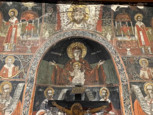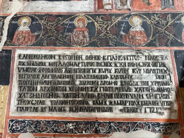 Ο Ναός, ο οποίος πρωτοχτίστηκε τέλη του 15ου αιώνα, έλαβε την σημερινή του μορφή κατόπιν ανακαίνισης στα 1721, με τον λαϊκό αγιογράφο Κωνσταντή να ολοκληρώνει την εικονογραφική σύνθεση στα 1722. Ο Ναός με μοναδικές αγιογραφίες διακοσμημένος, αποτυπώνει όχι μόνο τα καλλιτεχνικά ρεύματα της εποχής του, αλλά και το υψηλό επίπεδο πολιτισμού, ήθους και κοινοτικού προσανατολισμού των προπατόρων μας.