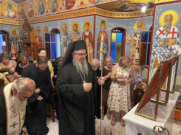 Ο Σεβασμιώτατος τέλεσε την Ακολουθία του Αγιασμού και των Θυρανοιξίων του νεόδμητου Ιερού Παρεκκλησίου και εν συνεχεία χοροστάτησε στον Εσπερινό και στην Ιερά Παράκληση προς την Υπεραγία Θεοτόκο.