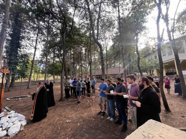 Μετά την Ακολουθία του Μεγάλου Παρακλητικού Κανόνος, στην οποία έψαλλαν οι φοιτητές και τέλεσε ο πνευματικός υπεύθυνος της κατασκήνωσης Αιδεσιμολ. Πρωτ. π. Αθανάσιος Μαρινόπουλος, ο Σεβασμιώτατος μίλησε στους φοιτητές επικαίρως και συζήτησε μαζί τους. Οι φοιτητές σε κλίμα ενθουσιασμού τραγούδησαν χριστιανικά τραγούδια και δημιούργησαν ένα μοναδικό κατασκηνωτικό κλίμα.