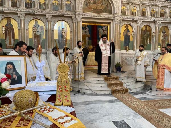 Ο Σεβασμιώτατος Μητροπολίτης Λαρίσης και Τυρνάβου κ. Ιερώνυμος τέλεσε την επιμνημόσυνη δέηση υπέρ αναπαύσεως του προκατόχου του και ακολούθως, κλήρος και λαός μετέβησαν επί του μνήματος, όπου αναπέμφθηκε τρισάγιο.