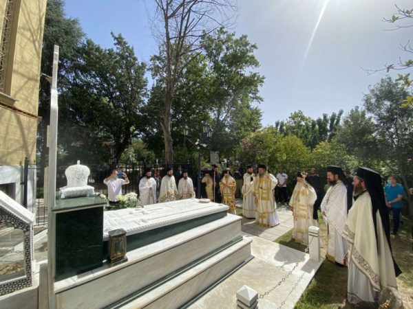 Μετά την τέλεση του Μνημοσύνου, οι Αρχιερείς, οι Ιερείς, ο Δήμαρχος Λαρισαίων κ. Απόστολος Καλογιάννης και οι Βουλευτές οι οποίοι παρίσταντο, κατευθήνθηκαν πίσω από το Ιερό του Ναού στον τάφο του Μακαριστού Αρχιερέως, όπου και τελέσθηκε νεκρώσιμο τρισάγιο.