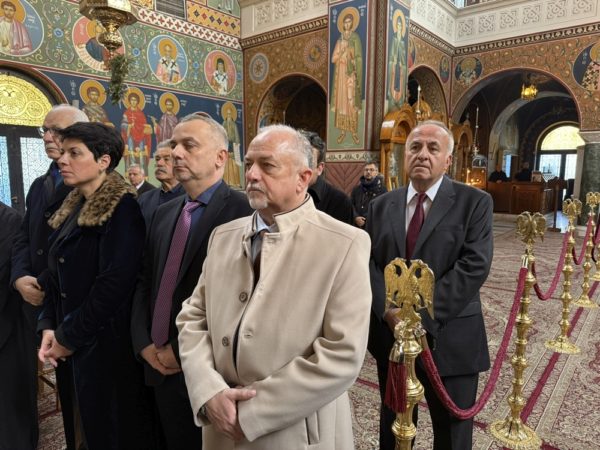 Συμμετείχαν συμπροσευχητικά η Αντιπεριφερειάρχης κ. Μαρία Γαλλιού, ο Αρχηγός Τακτικής Αεροπορίας κ. Παναγιώτης Γεωργακόπουλος, ο Διοικητής της 1ης Στρατιάς κ. Σταύρος Παπασταθόπουλος, ο Γενικός Περιφερειακός Αστυνομικός Διευθυντής Θεσσαλίας κ. Στυλιανός Μπιλιάλης, ο θεματικός Αντιπεριφερειάρχης κ. Βασίλειος Σίμος, ο Αντιδήμαρχος Παιδείας και Πολιτισμού κ. Ηρακλής Γερογιώκας, ο πρώην Δήμαρχος Λαρισαίων κ. Απόστολος Καλογιάννης, ενώ στη σύντομη προσλαλιά του, ο σεπτός μας Ποιμενάρχης αναφέρθηκε στον μακαριστό Αρχιεπισκόπο και στη χαρισματική προσωπικότητα του, τονίζοντας ότι πλέον έχουμε έναν ισχυρό πρεσβευτή υπέρ ημών στον Θρόνο του Θεού και ευχόμαστε «εις εαυτούς και αλλήλους» να μας σκεπάζει η ευχή του.