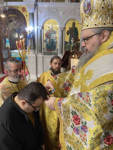Στον Ιερό Ναό Αγίων Κωνσταντίνου και Ελένης τέλεσε την Ευχαριστιακή Σύναξη ο Σεβασμιώτατος Μητροπολίτης Λαρίσης και Τυρνάβου κ. Ιερώνυμος, σήμερα, δεύτερη ημέρα των Χριστουγέννων, ενώ κατά τη διάρκεια της Θείας Λειτουργίας χειροθέτησε Αναγνώστη τον ευλαβέστατο, πολύτεκνο πατέρα πέντε τέκνων κ. Γεώργιο Κερμελίδη.