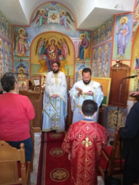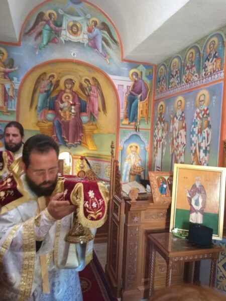 Αν και ο Σεβασμιώτατος δεν εόρτασε και φέτος τα ονομαστήριά του, παρ’ ολ’ αυτά από νωρίς το πρωί κλήρος και λαός προσέτρεξε να συμμετάσχει στο Μυστήριο της Θείας Ευχαριστίας, αλλά και να ευχηθεί στον Σεβασμιώτατο Ποιμενάρχη τα «έτη πολλά, καρποφόρα κι ευλογημένα».