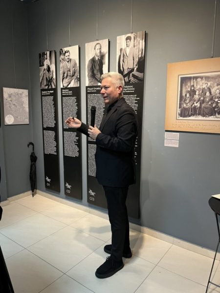 Ο παριστάμενος Διευθυντής της «Αγιορειτικής Εστίας» και επιμελητής της Έκθεσης κ. Αναστάσιος Ντούρος μετέφερε τον χαιρετισμό του Δημάρχου Θεσσαλονίκης και Προέδρου της Εστίας κ. Στυλ. Αγγελούδη και ευχαρίστησε την τοπική Εκκλησία και τον Δήμο για την ωραία συνεργασία, εκφράζοντας την ελπίδα ότι θα αποδώσει στο μέλλον και άλλους καρπούς. Στη συνέχεια, ξενάγησε όλους τους συμμετέχοντες στο φωτογραφικό και το κινηματογραφικό υλικό της Έκθεσης και εξηγώντας πώς βρέθηκε στα τέλη του 2017 στο Τμήμα Τέχνης και Αρχαιολογίας του Πανεπιστημίου Princeton, κατά τη διάρκεια μιας μετακόμισης· πώς πραγματοποιήθηκε το ταξίδι των τριών περιηγητών στο Άγιον Όρος και τα Μετέωρα το φθινόπωρο του 1929 μαζί με τον Έλληνα διερμηνέα τους· πώς εμπλουτίζουν το διαθέσιμο ιστορικό, κοινωνικό, λαογραφικό, αρχιτεκτονικό υλικό με μια νέα, πολύτιμη πηγή και πολύτιμα στοιχεία.