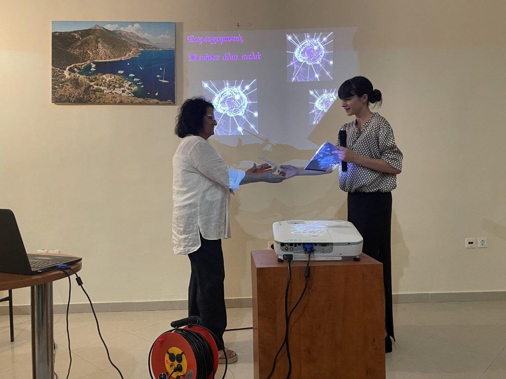 Οι κάτοικοι του Καλάμου, της γραφικής και ιστορικής νησίδας του Ιονίου, είχαν την ξεχωριστή ευκαιρία να παρακολουθήσουν το βράδυ της περασμένης Κυριακής, 17 Σεπτεμβρίου 2023 στο Πνευματικό Κέντρο του νησιού την επιστημονική διάλεξη της ερίτιμης κυρίας Μαριγούλας Μαργαρίτη, Καθηγήτριας Φυσιολογίας Ανθρώπου και Ζώων του Πανεπιστημίου Πατρών, με θέμα: «Εγκέφαλος, ο Σκηνοθέτης της ζωής μας».
