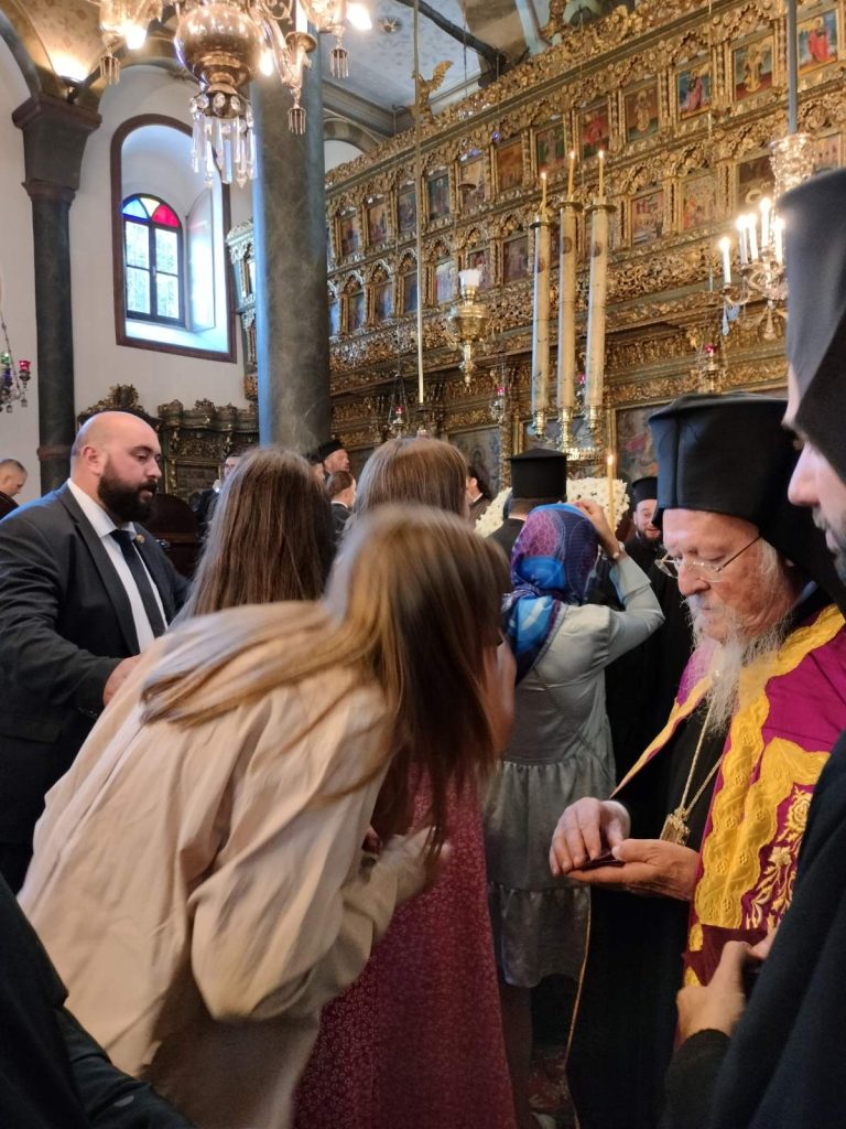 Βρίσκεται ο Παναγιώτατος Αρχιεπίσκοπος Κωνσταντινουπόλεως Νέας Ρώμης και Οικουμενικός Πατριάρχης κ. Βαρθολομαίος εκεί, προσκυνητής της Θεοτόκου προστάτιδας της Πόλης. Ο ίδιος τελεί τη χειροθεσία ενός νέου Άρχοντα Οφφικιαλίου. Στον Εσπερινό, νωρίτερα, χοροστατεί ο Μακαριώτατος Μητροπολίτης Κιέβου και πάσης Ουκρανίας κ. Επιφάνιος. Βιώματα πρωτόγνωρα. Ιστορικές οι στιγμές. Πολύ αργότερα τα παιδιά θα το αξιολογήσουν.