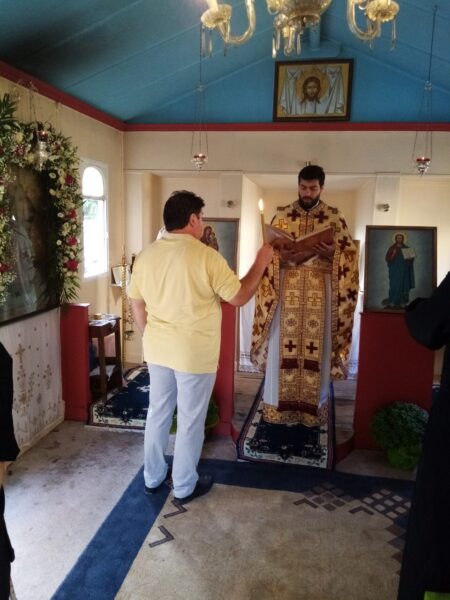 Την Θεία Λειτουργία τέλεσε ο Αιδεσιμολ. Πρεσβύτερος π. Ηλίας Καραλής, εφημέριος Ιερού Ενοριακού Ναού Αγίου Αθανασίου Αγίου Ηλία, ο οποίος και κήρυξε τον θείο λόγο καθώς και ο Αιδεσιμολ. Οικονόμος π. Παναγιώτης Ζαβιτσάνος, εφημέριος Ιερού Ενοριακού Ναού Αγίου Αθανασίου Απολπαίνης και διευθυντής του Οίκου Προνοίας.