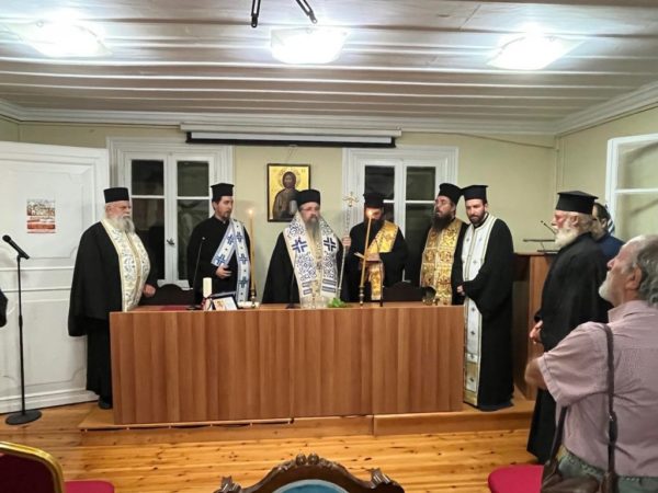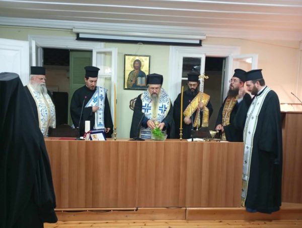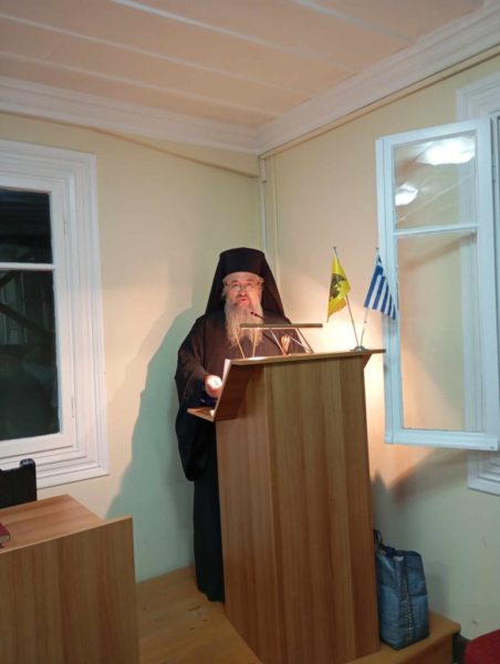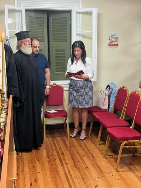 Στη συνέχεια, στην αίθουσα του Πνευματικού Κέντρου «Καταφυγή», ο Σεβασμιώτατος τέλεσε τον Αγιασμό της έναρξης του νέου διδακτικού έτους. Ακολούθησε σύντομη εκδήλωση, κατά την οποία μίλησε εκ μέρους των διδασκόντων η κα Μαρία Κακλαμάνη, αναφερόμενη στην στοχοθεσία του νέου έτους και κάνοντας μικρό απολογισμό της προηγούμενης χρονιάς.