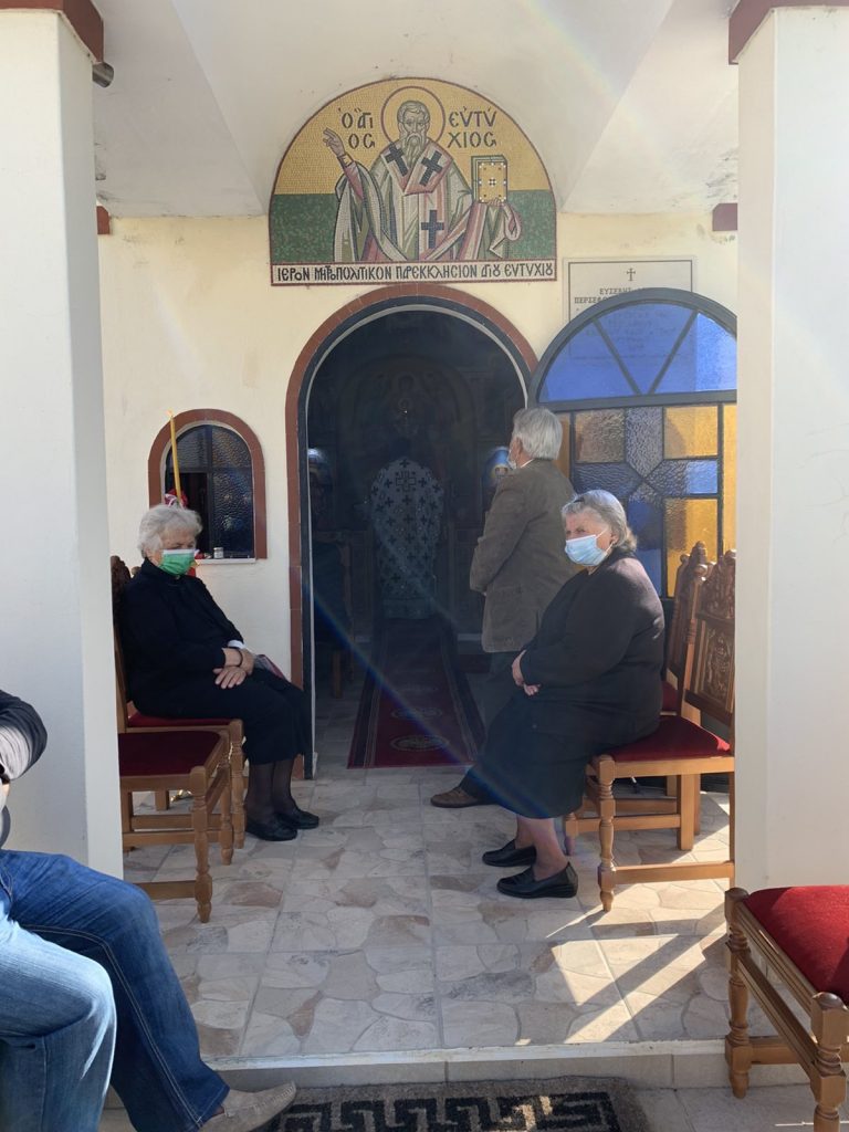 Την Αναστάσιμη Θεία Λειτουργία τέλεσε ο Πανοσιολ. Αρχιμανδρίτης π. Σπυρίδων Μπούρης. Πριν το πέρας της Θείας Λειτουργίας τελέσθηκε Τρισάγιο υπέρ αναπαύσεως των κτητόρων του Ιερού Ναού Ευσταθίου και Ευτυχίου Λαλαφράγκου.