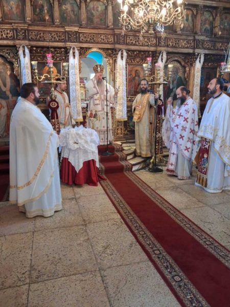 Μετά το πέρας της Πανηγυρικής Θείας Λειτουργίας ο Σεβασμιώτατος μοίρασε το αντίδωρο και τον άρτο στο ευσεβές εκκλησίασμα ευχόμενος σε κλήρο και λαό έτη πολλά κι ευλογημένα δια πρεσβειών των εορταζόμενων Αγίων της Εκκλησίας μας.