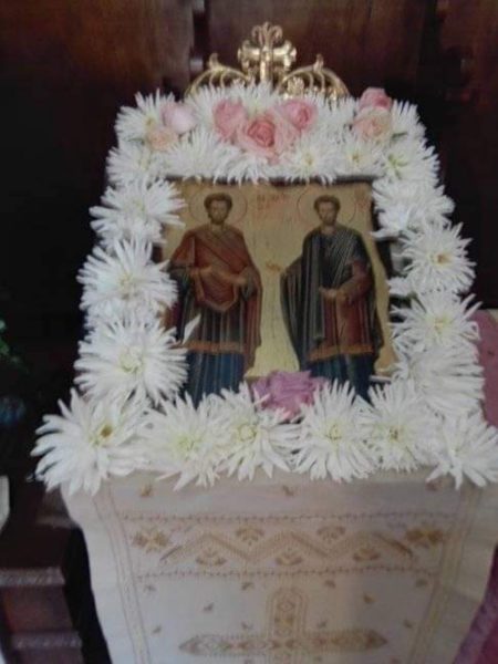 Σήμερα το πρωί (Κυριακής, 1 Νοεμβρίου) τελέσθηκε Πανηγυρική Θεία Λειτουργία μετ᾽ αρτοκλασίας, ιερουργούντων του Πανοσιολ. Αρχιμανδρίτου π. Σπυρίδωνος Μπούρη, ο οποίος και κήρυξε τον θείο λόγο, του εφημερίου του εν λόγω Ιερού Ναού, Αιδεσιμ. Πρεσβυτέρου π. Γρηγορίου Τσαβαλά και του ευλαβεστάτου Διακόνου, π. Νικολάου Κοντοπρία. Το απόγευμα της ίδιας ημέρας και ώρα 5.00 μ.μ. τελέσθηκε το Μυστήριο του Ιερού Ευχελαίου.