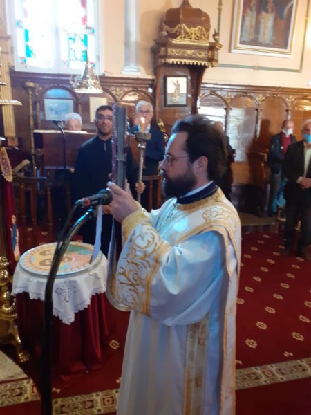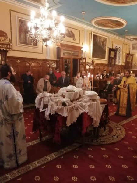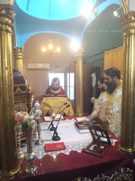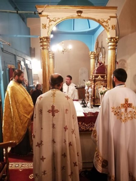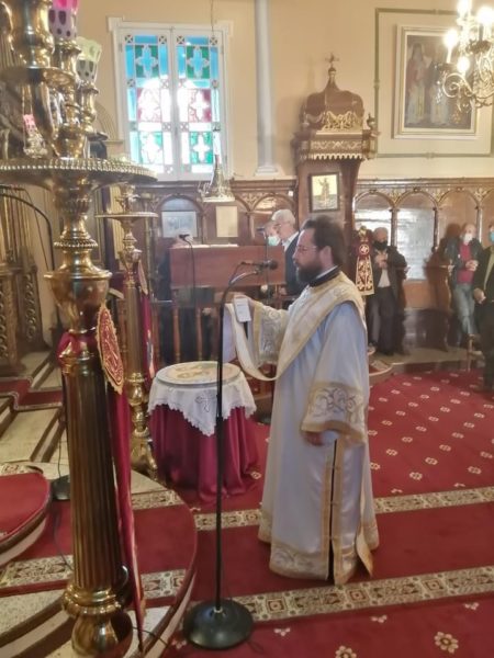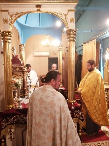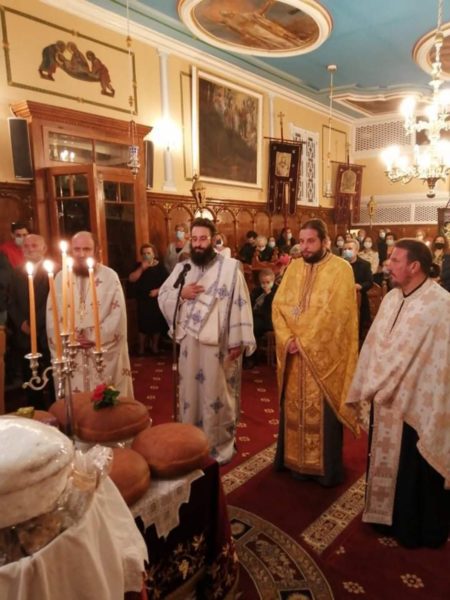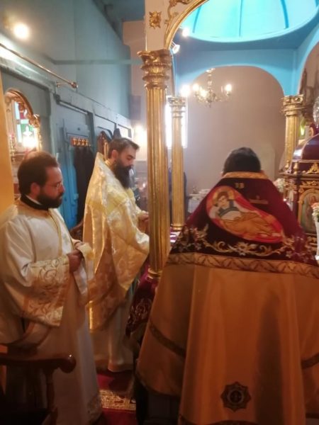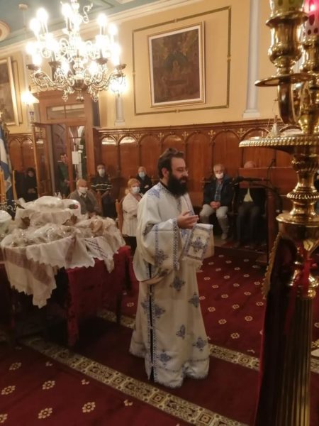 Σήμερα το πρωί (Κυριακής, 1 Νοεμβρίου) τελέσθηκε Πανηγυρική Θεία Λειτουργία μετ᾽ αρτοκλασίας, ιερουργούντων του Πανοσιολ. Αρχιμανδρίτου π. Σπυρίδωνος Μπούρη, ο οποίος και κήρυξε τον θείο λόγο, του εφημερίου του εν λόγω Ιερού Ναού, Αιδεσιμ. Πρεσβυτέρου π. Γρηγορίου Τσαβαλά και του ευλαβεστάτου Διακόνου, π. Νικολάου Κοντοπρία. Το απόγευμα της ίδιας ημέρας και ώρα 5.00 μ.μ. τελέσθηκε το Μυστήριο του Ιερού Ευχελαίου.