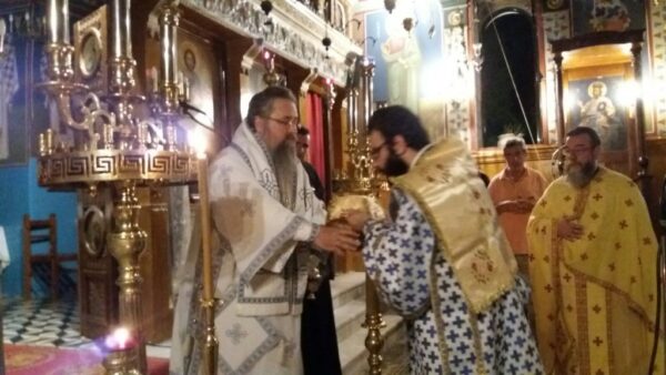 Τον Σεβασμιώτατο στην ιστορική Ιερά Μονή κατά την Αρχιερατική Ιερά Αγρυπνία πλαισίωσαν ο Ηγούμενος της Ιεράς Μονής Πανοσ. Αρχιμανδρίτης π. Σεβαστιανός Μόσχος, ο Αρχιερατικός Επίτροπος της νήσου Αιδεσιμ. Πρωτοπρεσβύτερος π. Χριστόδουλος Τριλίβας, ο Αιδεσιμολ. Πρωτοπρεσβύτερος π. Θεοδόσιος Δενδρινός και ο ευλαβέστατος Διάκονος π. Σεραφείμ Περγάρης.