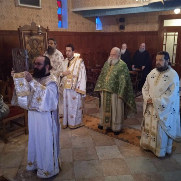 Πριν το πέρας του Μυστήριου της Θείας Ευχαριστίας τελέσθηκε Τρισάγιο υπέρ μακαρίας μνήμης και αιωνίου αναπαύσεως της ψυχής του μακαριστού Αιδεσιμολογιωτάτου Πρωτοπρεσβυτέρου π. Δημοσθένους Παπακωστόπουλου, ο οποίος διετέλεσε στη Λευκάδα επί είκοσι συναπτά έτη καθηγητής, εφημέριος του Ιερού Ενοριακού Ναού Αγίου Νικολάου πόλεως και Γενικός Αρχιερατικός Επίτροπος της Ιεράς Μητροπόλεως Λευκάδος και Ιθάκης.
