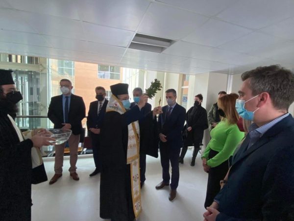 Ο Σεβασμιώτατος Μητροπολίτης Λευκάδος κ. Θεόφιλος, συνοδευόμενος από τον Γενικό Αρχιερατικό Επίτροπο της Ιεράς Μητρόπολης Αιδεσιμολ. Πρωτοπρεσβύτερο π. Αθανάσιο Κοσμά και κληρικούς, μετέβει, κατόπιν πρόσκλησης του Διοικητή κ. Ιωάννου Μπάκαβου, στο Γενικό Νοσοκομείο Λευκάδος όπου και τέλεσε τον Αγιασμό των Εγκαινίων της δανειστικής βιβλιοθήκης του Νοσηλευτικού Ιδρύματος της πόλης, το μεσημέρι του Σαββάτου, 19 Φεβρουαρίου 2022.
