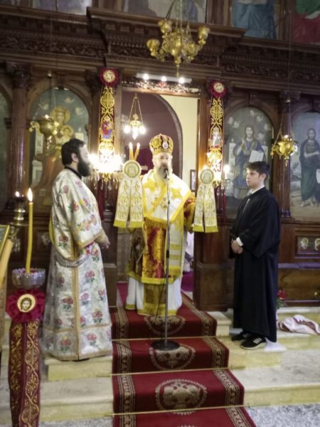 Πριν το πέρας της Πανηγυρικής Αρχιερατικής Θείας Λειτουργίας ο Σεβασμιώτατος Μητροπολίτης κ. Θεόφιλος αναφέρθηκε εν συντομία στο βίο και το μαρτυρικό θάνατο του εορταζομένου Αγίου Πρωτομάρτυρος και Αρχιδιακόνου Στεφάνου και την υποχρέωση που έχουμε όλοι, ως Χριστιανοί, να μαρτυρούμε καθημερινώς την πίστη μας στο όνομα του εν Τριάδι Θεού.