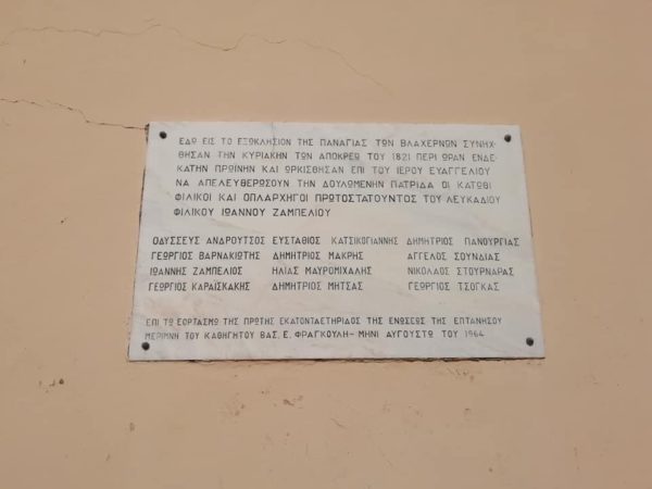 Την επέτειο της συνάντησης και ορκωμοσίας των Φιλικών και οπλαρχηγών της Δυτικής Στερεάς, Ηπείρου και Λευκάδας στο εξωκλήσι της Παναγίας της Βλαχέραινας, στον Κάμπο της Λευκάδας, την Κυριακή των Απόκρεω, 30 Ιανουαρίου 1821, τίμησε σήμερα το πρωί (Σάββατο, 30 Ιανουαρίου 2021) η Ιερά Μητρόπολη Λευκάδος. Συγκεκριμένα, ο Σεβασμιώτατος Μητροπολίτης Λευκάδος και Ιθάκης κ. Θεόφιλος τέλεσε μια λιτή επιμνημόσυνη δέηση και απόθεσε ένα απλό δάφνινο στεφάνι στο μνημείο που στήθηκε για να υπενθυμίζει την συνάντηση.