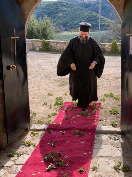 Μετά το πέρας της Ιερατικής Σύναξης ο Σεβασμιώτατος Μητροπολίτης Λευκάδος και Ιθάκης, συνοδευόμενος από τον π. Αθανάσιο και κληρικούς της Ιεράς Μητροπόλεως μετέβει με τον π. Αλέξιο και την Συνοδεία του στην Ιερά Μονή Αγίου Ιωάννου Προδρόμου στο Λιβάδι Καρυάς όπου και τους υποδέχθηκε ο Ηγούμενος της Ιεράς Μονής Πανοσιολογιώτατος Αρχιμανδρίτης π. Χριστοφόρος Αραβανής.