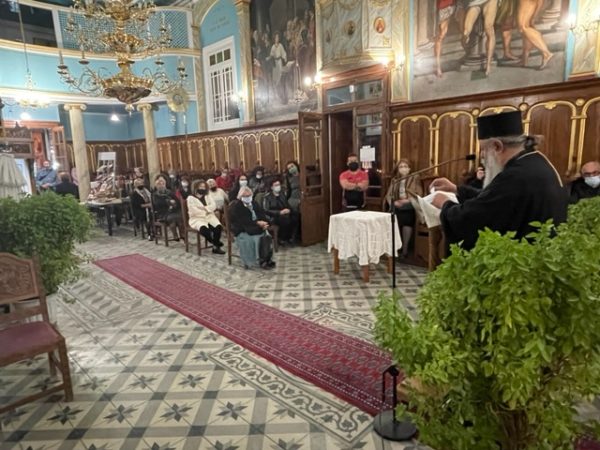 Ομιλία με θέμα: «Ο Πατριάρχης της αγχόνης» παραχώρησε ο Πανοσιολογιώτατος Αρχιμανδρίτης π. Νικηφόρος Ασπρογέρακας, Καθηγούμενος της Ιεράς Μονής Υπεραγίας Θεοτόκου Φανερωμένης Λευκάδος.